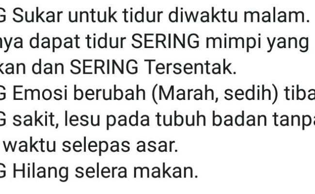 Sakit kepala atau anggota badan tertentu selepas waktu ashar keatas.